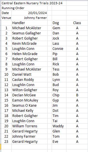 Central & Eastern Nursery Trial 11 20th January 2024 Jonny Farmers
